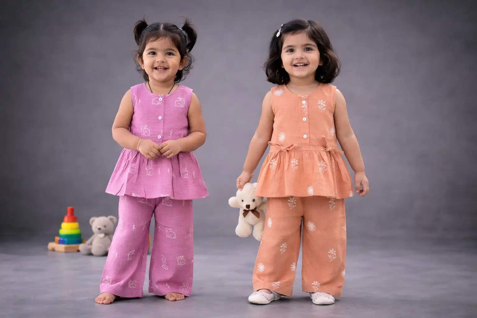 This product has multiple variants. The options may be chosen on the product pageKhadi Cotton Girls Top & Pant Set