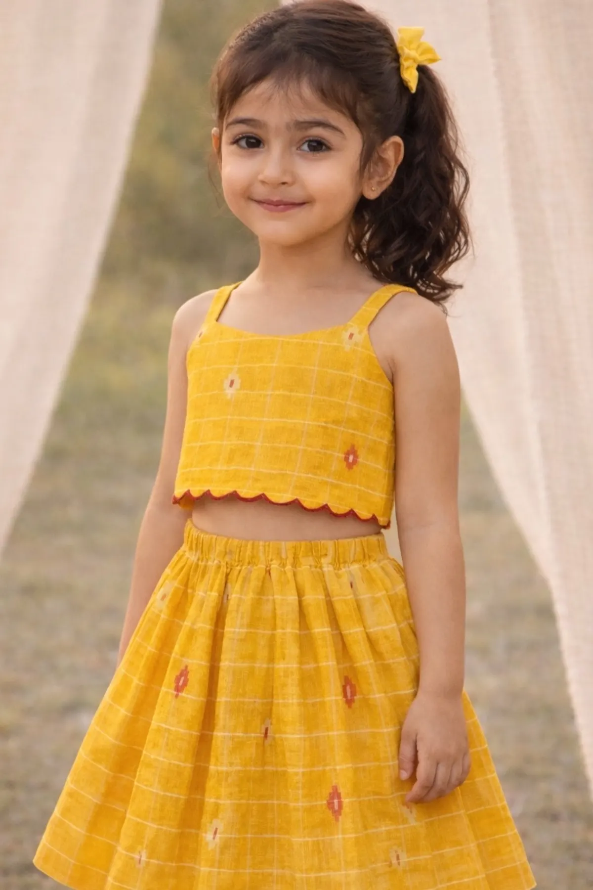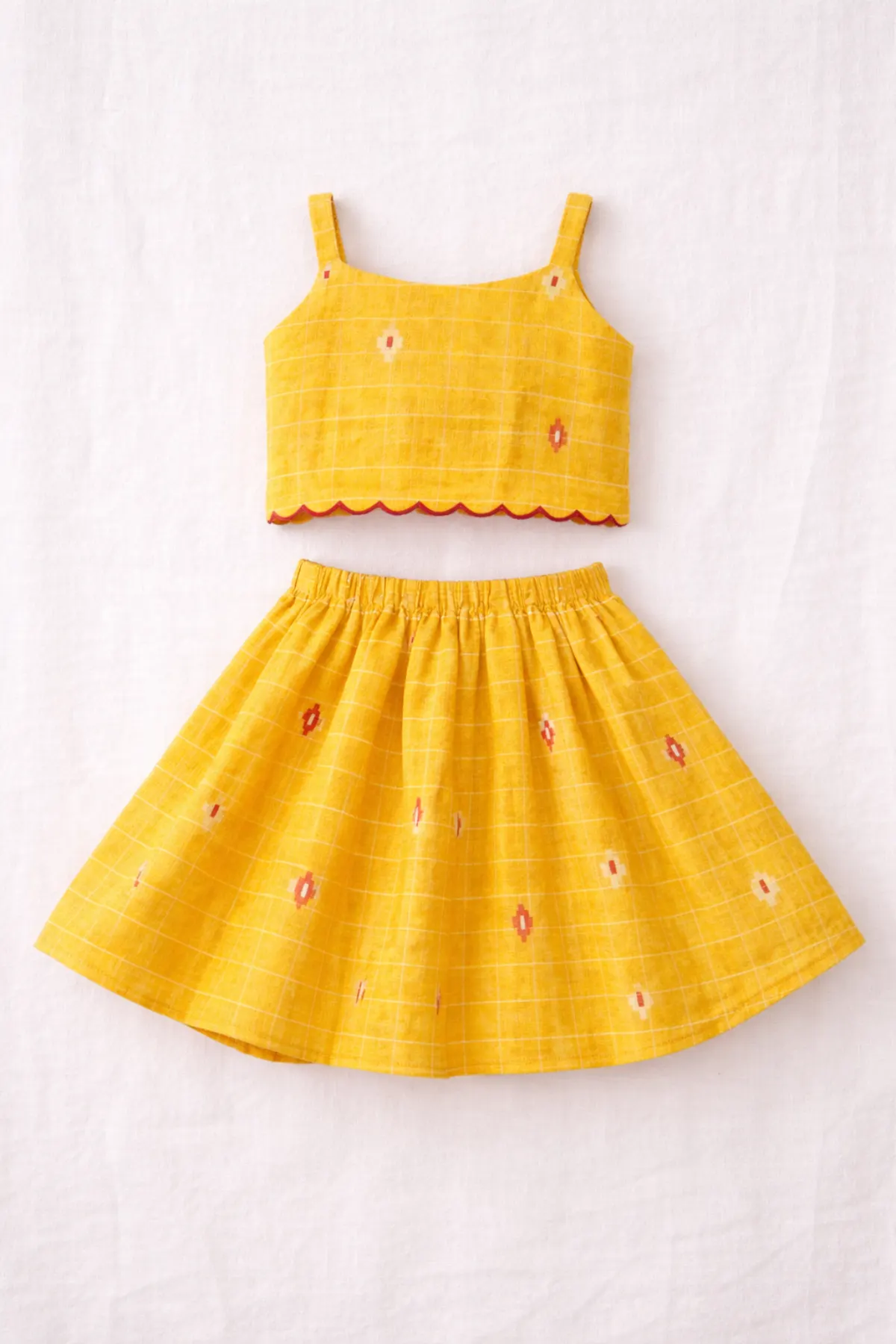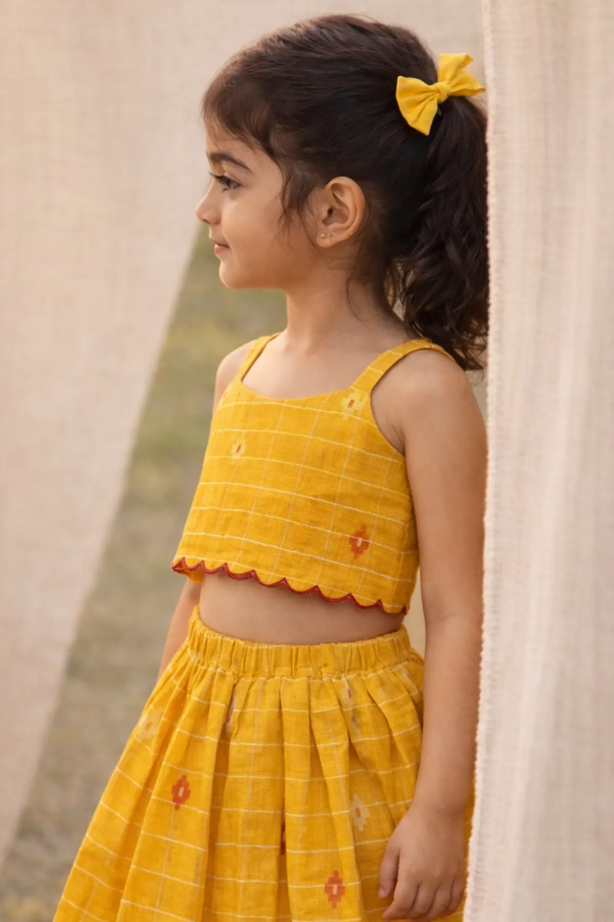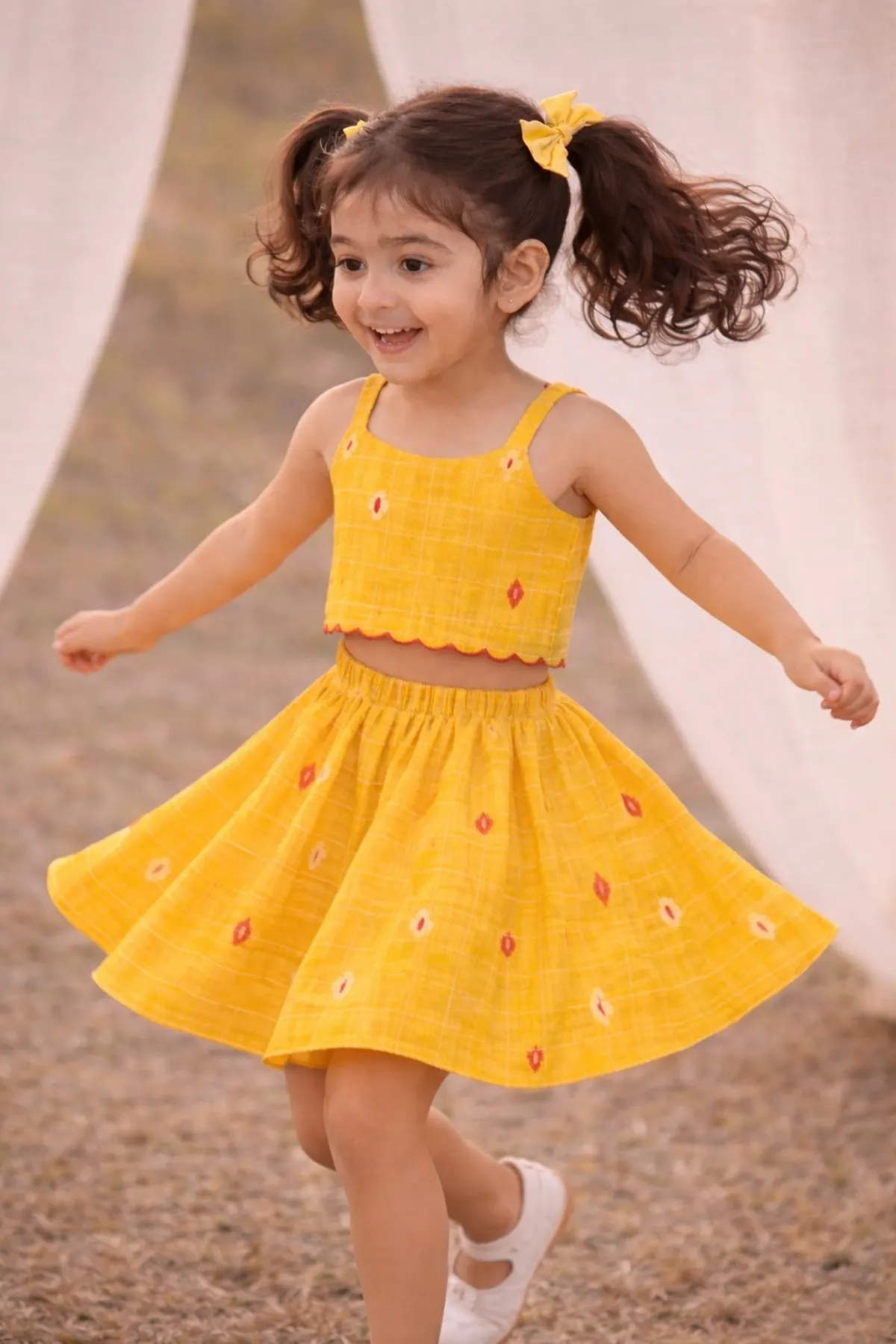 This product has multiple variants. The options may be chosen on the product pageYellow Jamdani Crop Top & Skirt Set